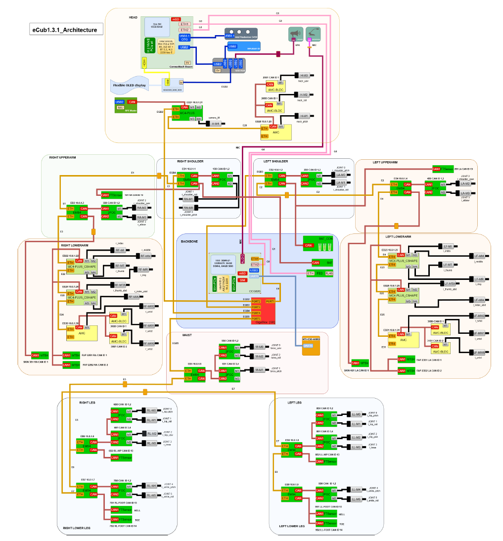 Ergocub1 3 ergoCub 1.3 Wiring The system architecture of ergoCub1.3 is depicted in the following image: Logic and Harness ergoCub 1.3 Full Robot ergoCub1.3_Logic_18252_1.3.0 ergoCub1.3_Harness_18253_1.3.0 Motor & Board Placement ergoCub 1.3 ergoCub1.3 S/N:002 rev1.3.0