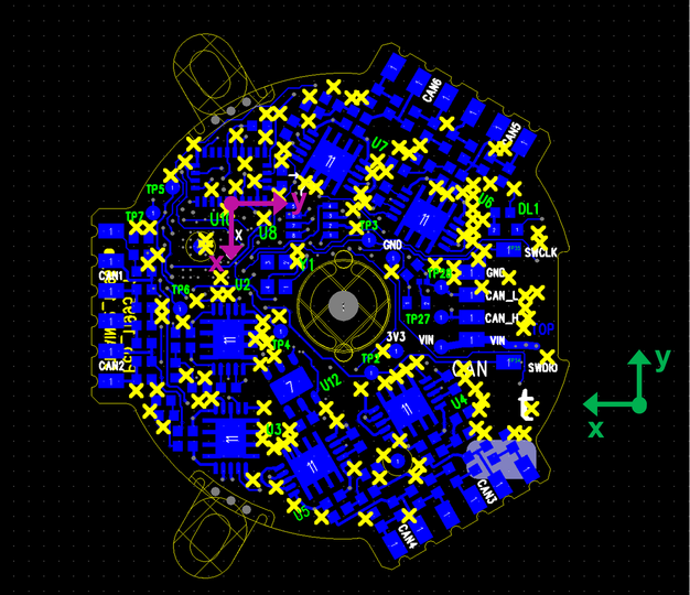 The IMU reference frame is defined w.r.t its location on the Strain2 PCB (see Figure 2). Its orientation can be also defined in terms of the F/T frame: