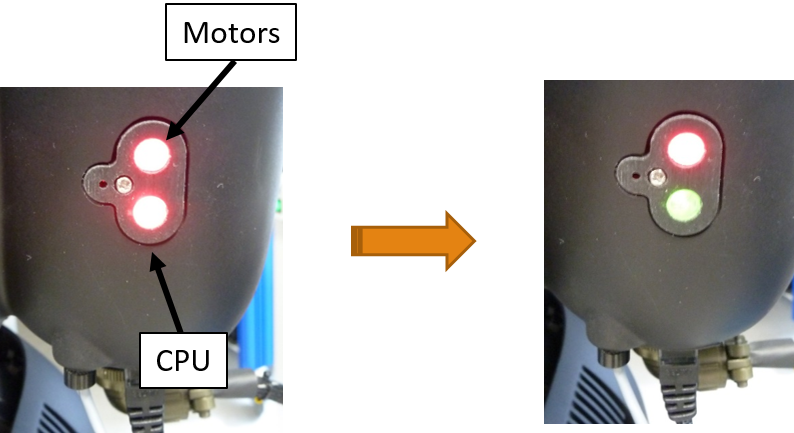 Turn both CPU and motors switches from icub at the level of the backpack.