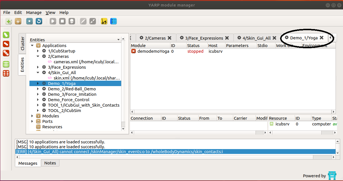- please select both icubsrv and icub-head