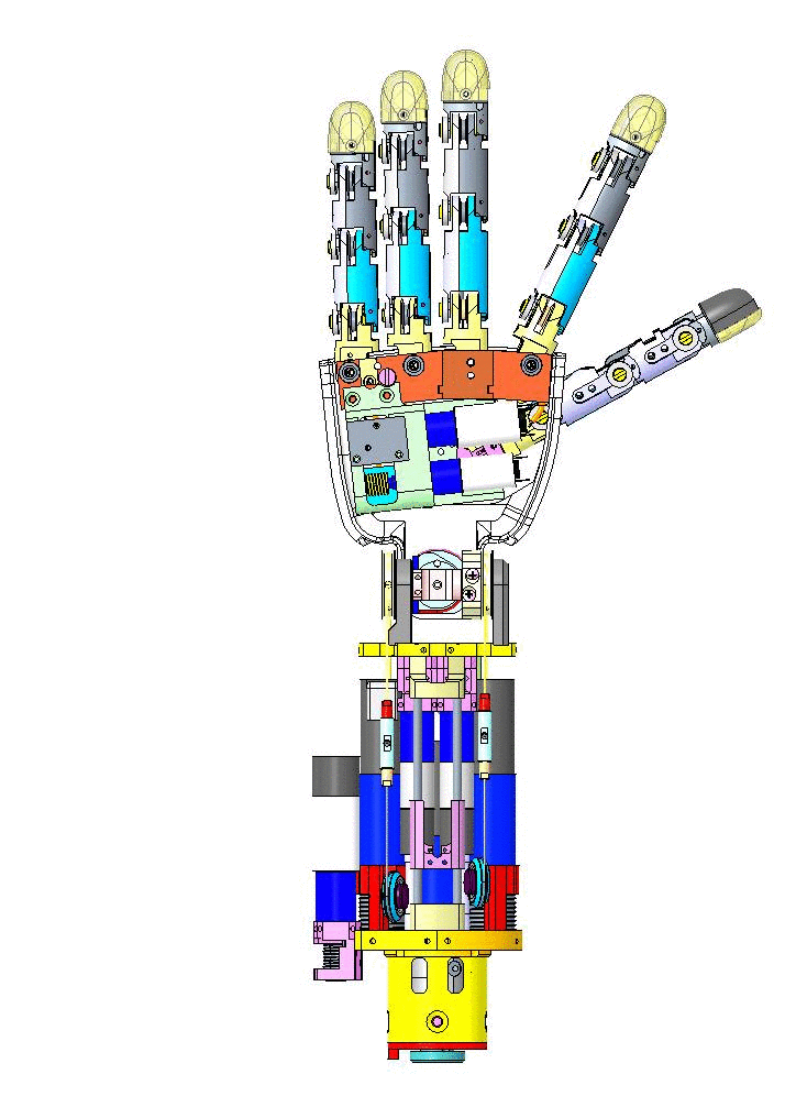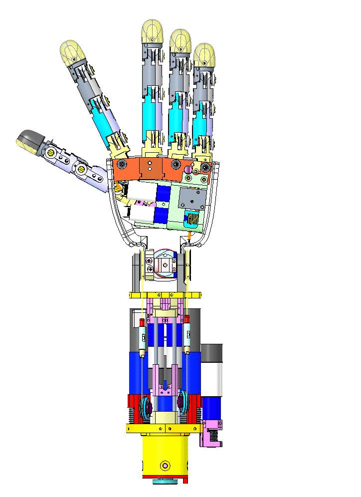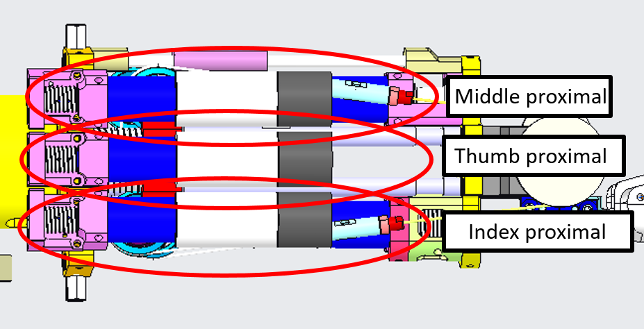 These 2 fingers actually form a single distal joint and are in fact driven by a single motor.