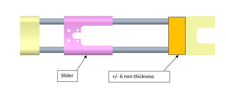 | Put an about 6 mm thickness piece in between the slider and the Ergal part (yellow). | |