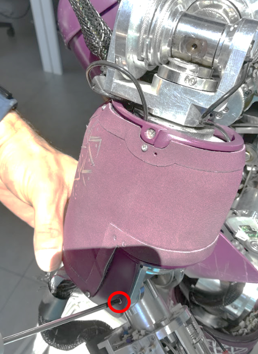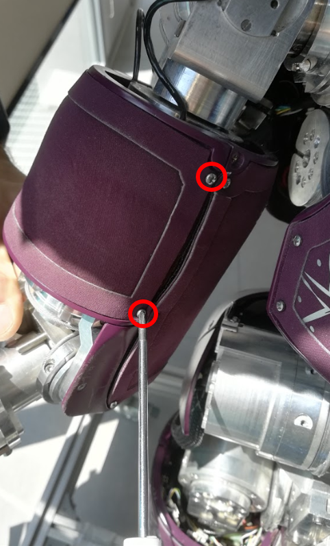 - Lower part of the upper arm cover removal - remove lateral screws and disconnect skin