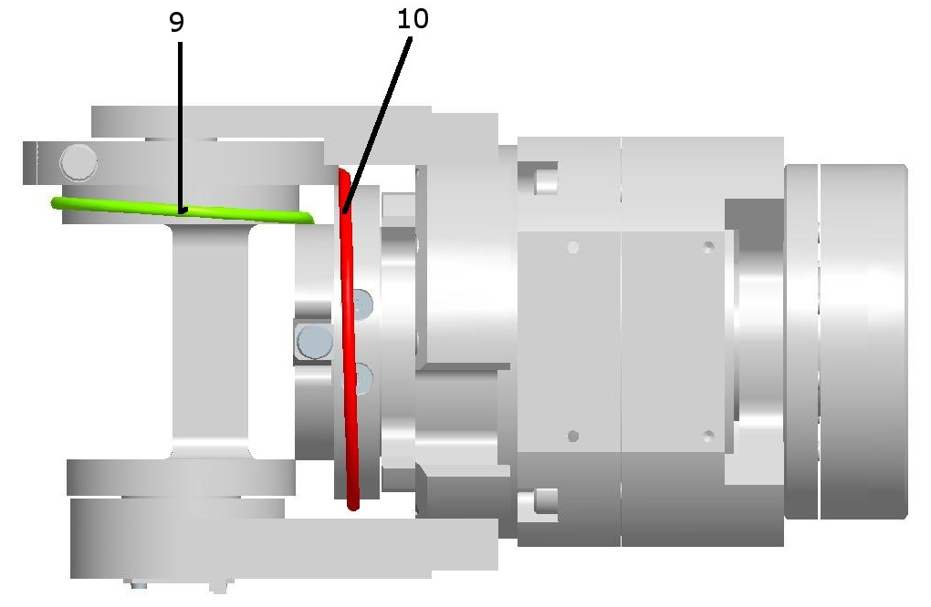 - Reach the 2 screws M4x12 on the green pulley and just untighten them until you can pass both crimp 8 and 7 following the routing explain below.