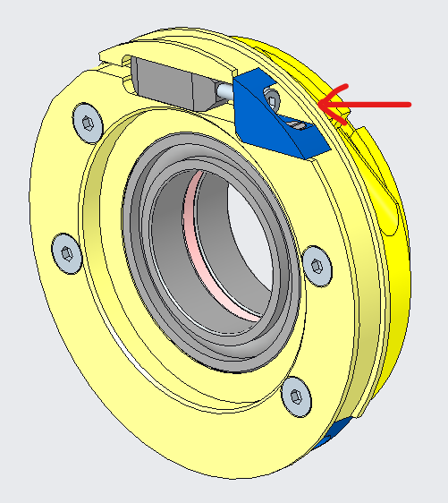 | Block of pulleys | Tensioner fully opened | Cavity of the tensioner hidden - crimp can't escape |
