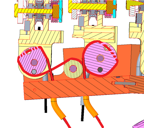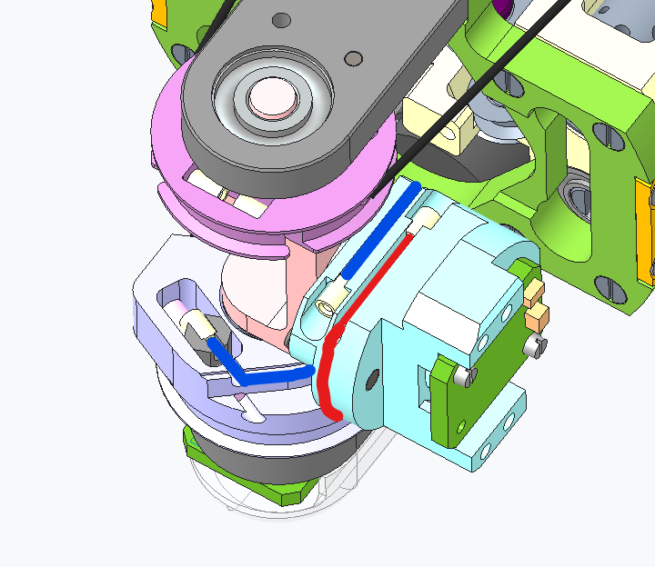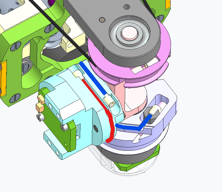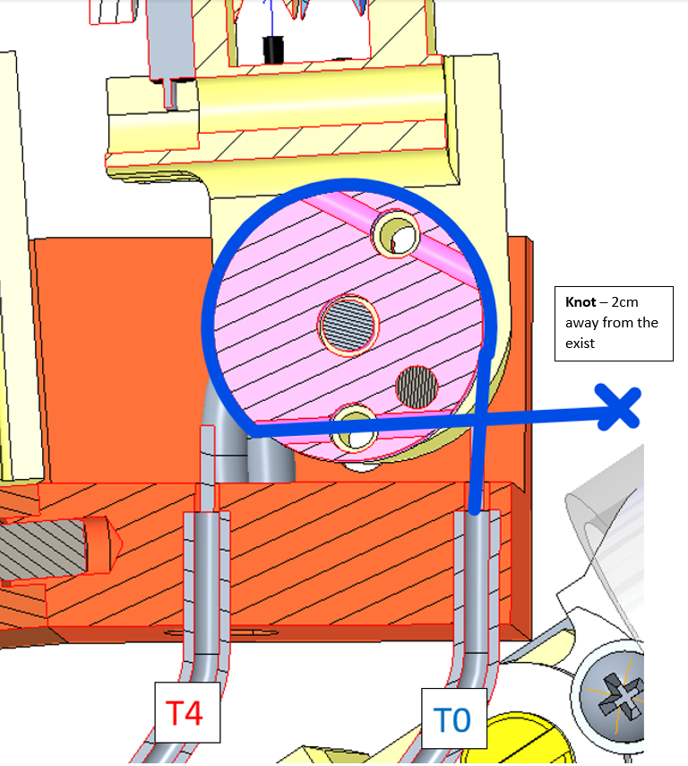 Here is a picture of the overall path of the cable inside the 3 tubes constituting the path of the cable. |