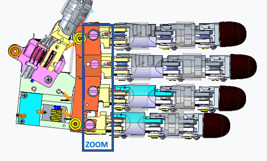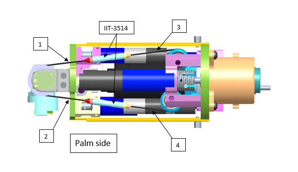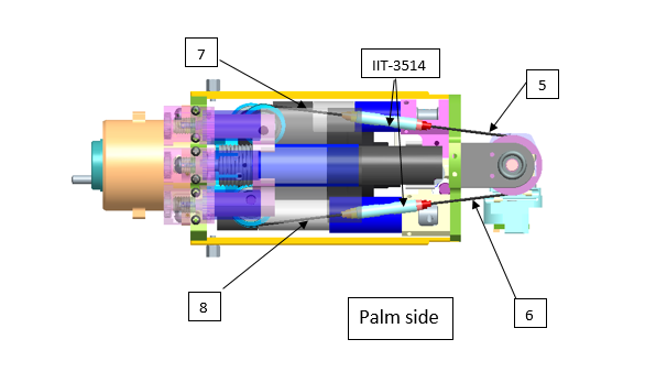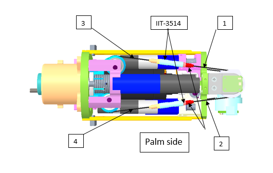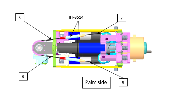 FIRST THING FIRST: Which side of the wrist is broken? The internal (refers to cables 1 to 4) or the external one (refers to cables 5 to 8)? Can you see some visual differences? YOU may have guessed on your own, but the answer is only that the external motor is beneath the 3 proximal motors, which makes it more complicated to reach and repair. Apart from that, it is exactly identical - so to proceed we will first see how to move the proximal motors and follow up with the explanation of the tendon repair in a more generical way. If you need to repair tendons from 1 to 4 please just proceed to STEP 2 |
