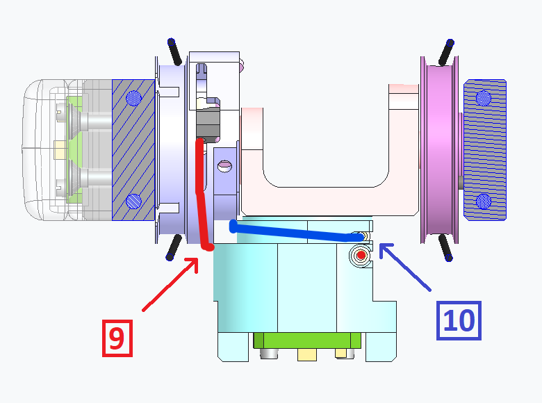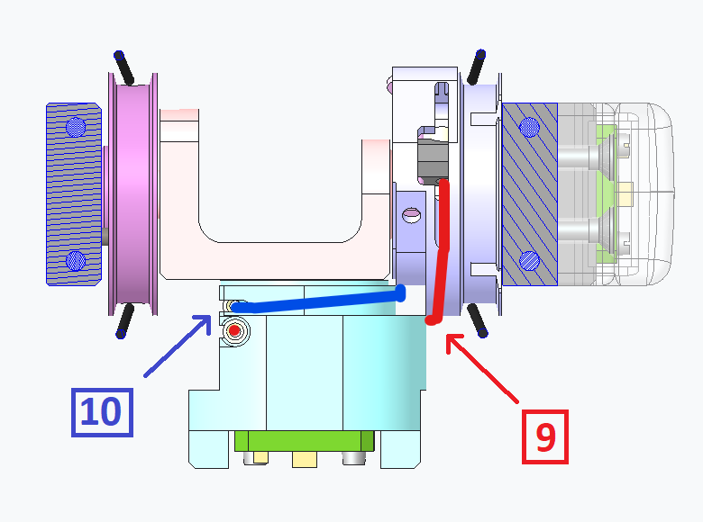 STEP 7: Here is the picture of the routing of the cable you need to realize. To do that, it is necessary to allow the pulleys to rotate around their pin. |