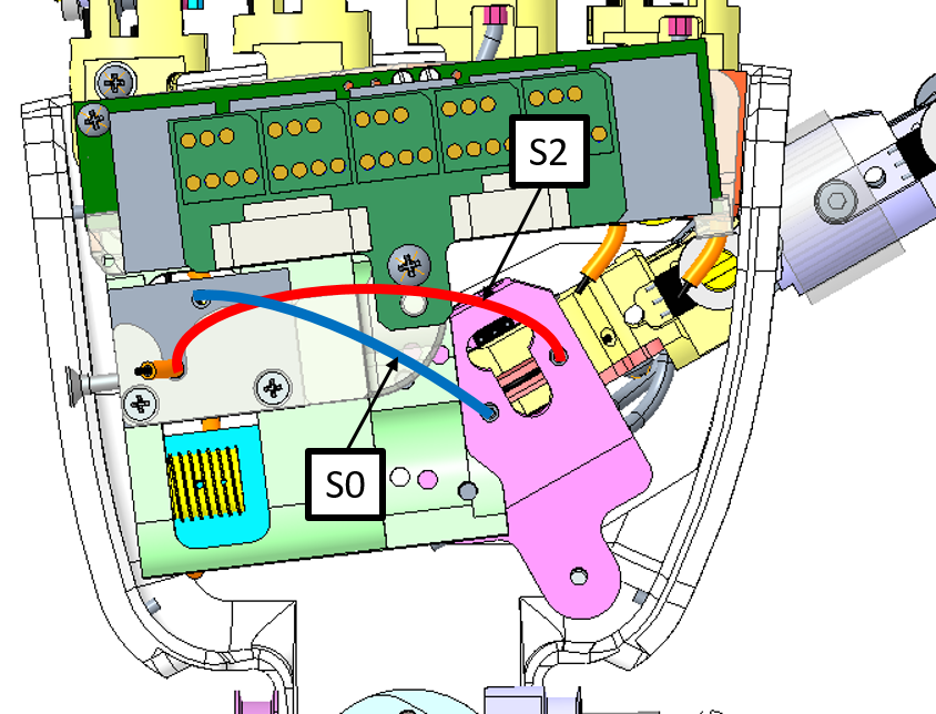 STEP 4: Insert both sides of the cable inside S2 and S0 until they sprout out from the palm side. Remember that S0 is the shorter sheath and S2 is the longer one. BE CAREFUL! The right hand is not symmetrical. |