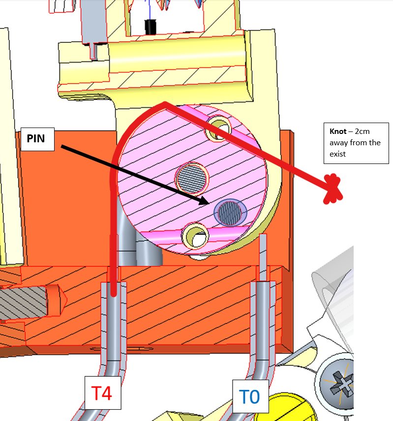| STEP 7b: RING FINGER Same 3 first steps as the Pinkie finger. 4. Finally insert the cable into the hole leading to T4. |