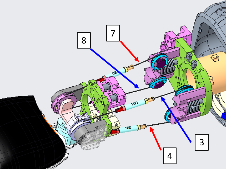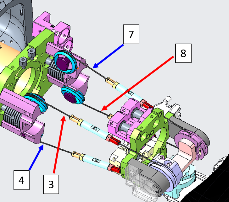 | We are finally getting to an end. Now that you know how to rewire every single one of the wrist cables you need to insert the tensioners. Let's make the example of the 4 cables 1 to 4. |
