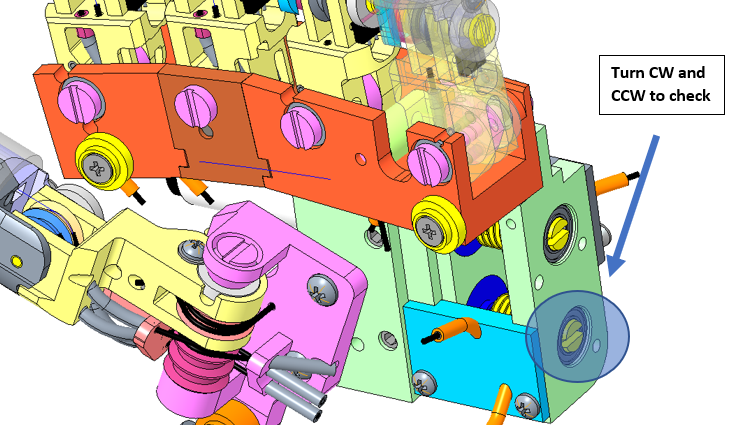 STEP 12: Final test: 1. remove the 2 blocks (foam ear plug or paper jamming) from the pulley motor 2. use the head screw from the pulley motor to check if the fingers get opened-closed whenever you turn it CW or CCW. |