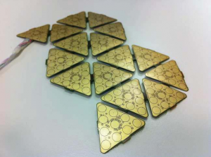 Each patch is composed by (at most 16) triangular modules, each consisting of 10 tactile sensors (aka taxels), with two additional small ones that are thermal pads (7th and 11th element). The 4th value corresponds to the taxel in the center of the triangle.