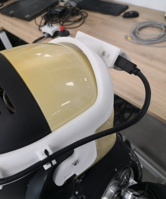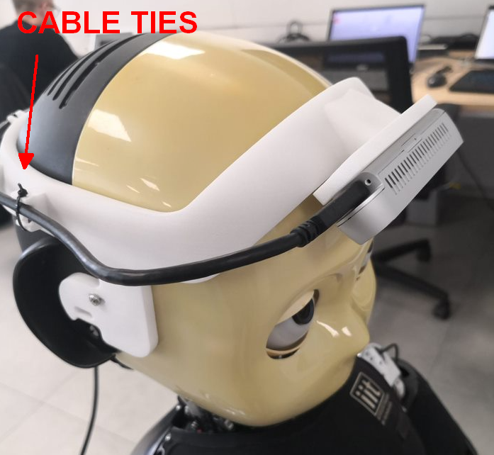 - Third step, fix the chosen RealSense model to the holder usign the screws V3-8--_-_U5933_C. At this point is possible to plug the USB Type-C cable cod. 15365 and use the cable ties cod. 531 to fix it around the head.