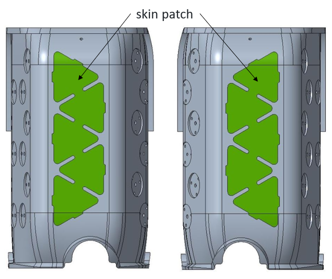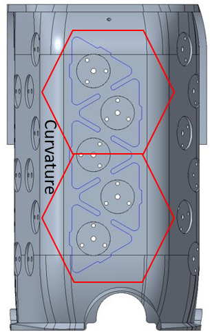 In previous revisions of the covers, the mini cards were organized in the shape of hexagons. This largely caused the skin patch PCB to flex and break, because the patches took the high curvature of the cover (see image).