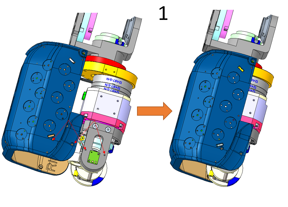 Perform the assembly sequence as shown in the image, keep in mind that the sequence is the same for both upper arms (Right and left)