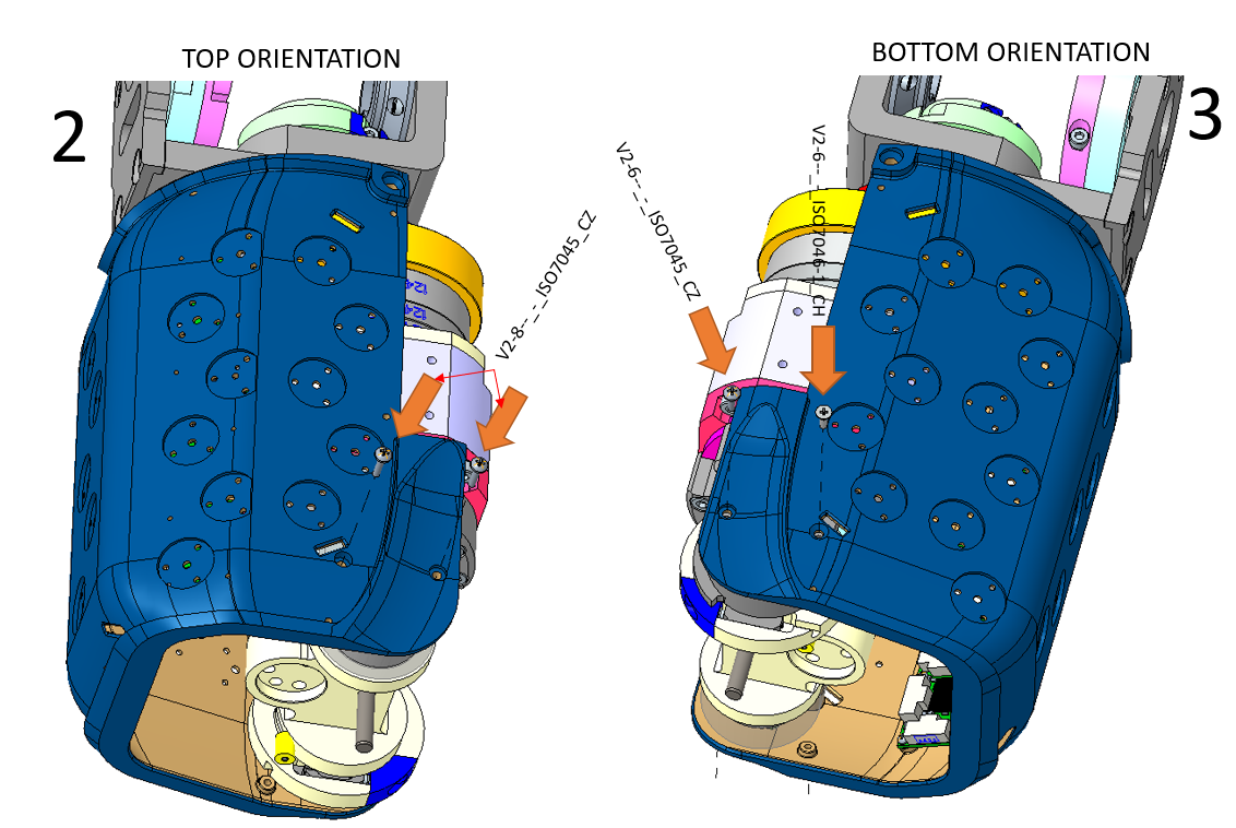 - Fourth step, close the covers of the upper arm by pushing the Lover cover inwards in order to align the attachment holes. After that fix the covers with the respective lives as shown in the pictures. This applies to both positions TOP and BOTTOM.
