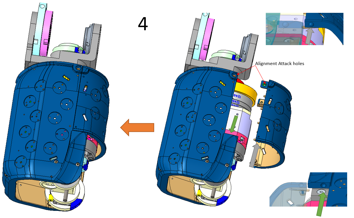 - First step push the cover (RC_IIT_017_P_023) inwards so as to align the attachment holes, both positions (TOP and BOTTOM), as can be seen in the image.